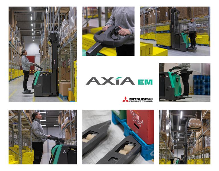 Nueva gama de apiladores con plataforma de alto rendimiento AXiA de Mitsubishi Forklift Trucks.