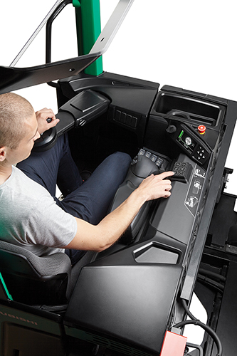 La cómoda cabina ergonómica de SENSiA EX permite un control preciso sin esfuerzo y reduce la fatiga del operario.